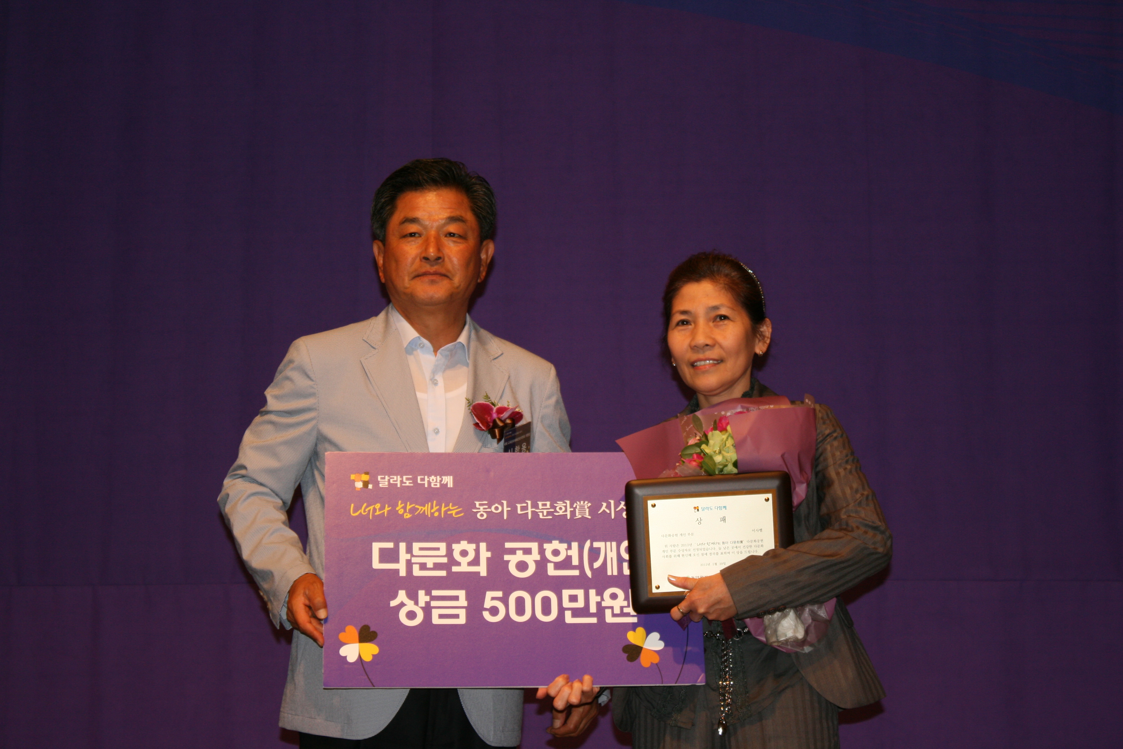 ¿Ã ÇØ ¼¼ ¹øÂ°·Î ¼ö»óÀÚ¸¦ ¼±Á¤ÇÑ µ¿¾Æ´Ù¹®È»óÀº ÇǺλö°ú ¾ð¾î, »ýȰ½À°üÀÌ ´Þ¶óµµ ¼·Î¸¦ Á¸ÁßÇÏ°í ¹è·ÁÇØ °Ç°ÇÑ ´Ù¹®È»çȸ¸¦ ¸¸µé±â À§ÇØ ³ë·ÂÇÑ À̵éÀ» °Ý·ÁÇϱâ À§ÇØ µ¿¾ÆÀϺ¸°¡ ÁÖÃÖÇÏ°í ¿©¼º°¡Á·ºÎ°¡ ÈÄ¿øÇÏ´Â »óÀ¸·Î À̻级¾¾´Â »ó±ÝÀ¸·Î 500¸¸¿øÀ» ¹Þ´Â´Ù.